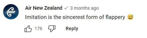Die Marke hat es sich nicht nehmen lassen, auch den YouTube-Post von Emirates zu kommentieren.