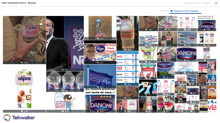 Pendant une période de 30 jours, les logos de nombreuses marques, dont Evian, Danone et Alpro, sont apparus dans les conversations sur les réseaux sociaux.