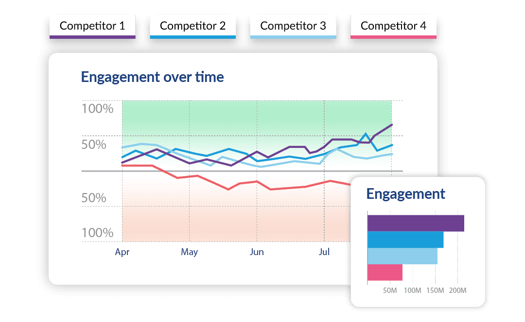 Compare your social media performance against your competitors and stand out among them as a trendsetter — not a follower.