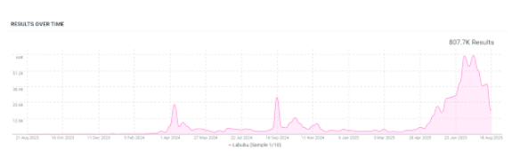Mentions of Labubu from Aug 21, 2023 to Aug 21, 2025; 10% sample; Talkwalker Social Listening; Source