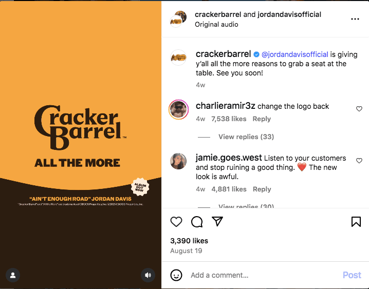 3. Cracker Barrel’s quick reversal of their logo change