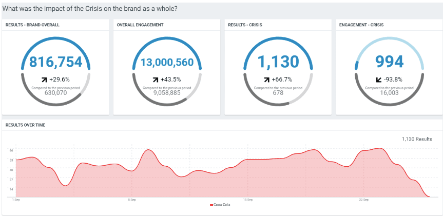 A downward trend in the public sentiment about your brand can be an early indicator of a brewing crisis. Once a crisis is already underway, sentiment analysis is critical to help you understand the full impact of what’s happening and gauge response to any corrective actions you take.