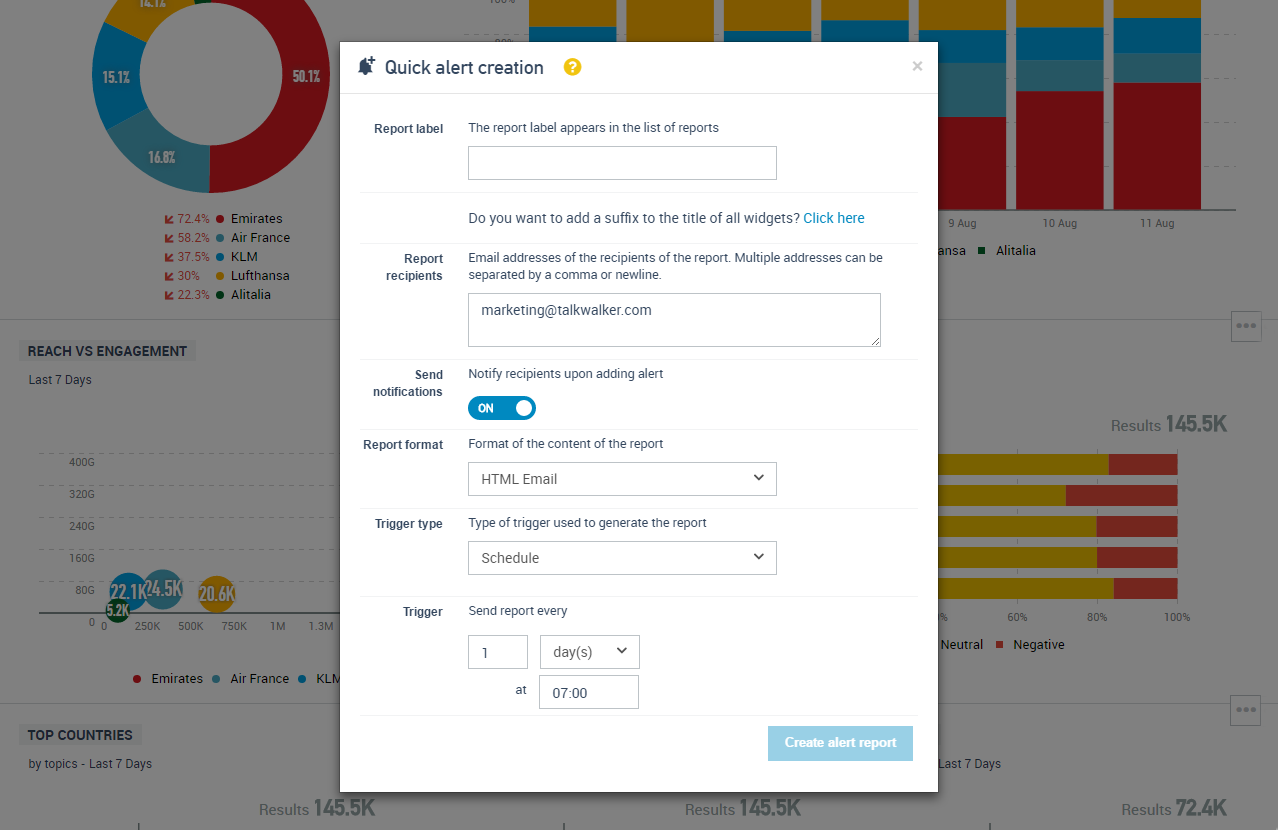 - Configure alerts and newsletters so that you and your colleagues receive a specific report by email without even needing to log into the tool.