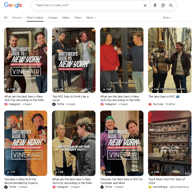 On visual-first social platforms, searches lead to visual-first results. Images and short videos can be easier (and more entertaining) to process, making them the preferred way to gather information for many people who have grown up immersed in these platforms.