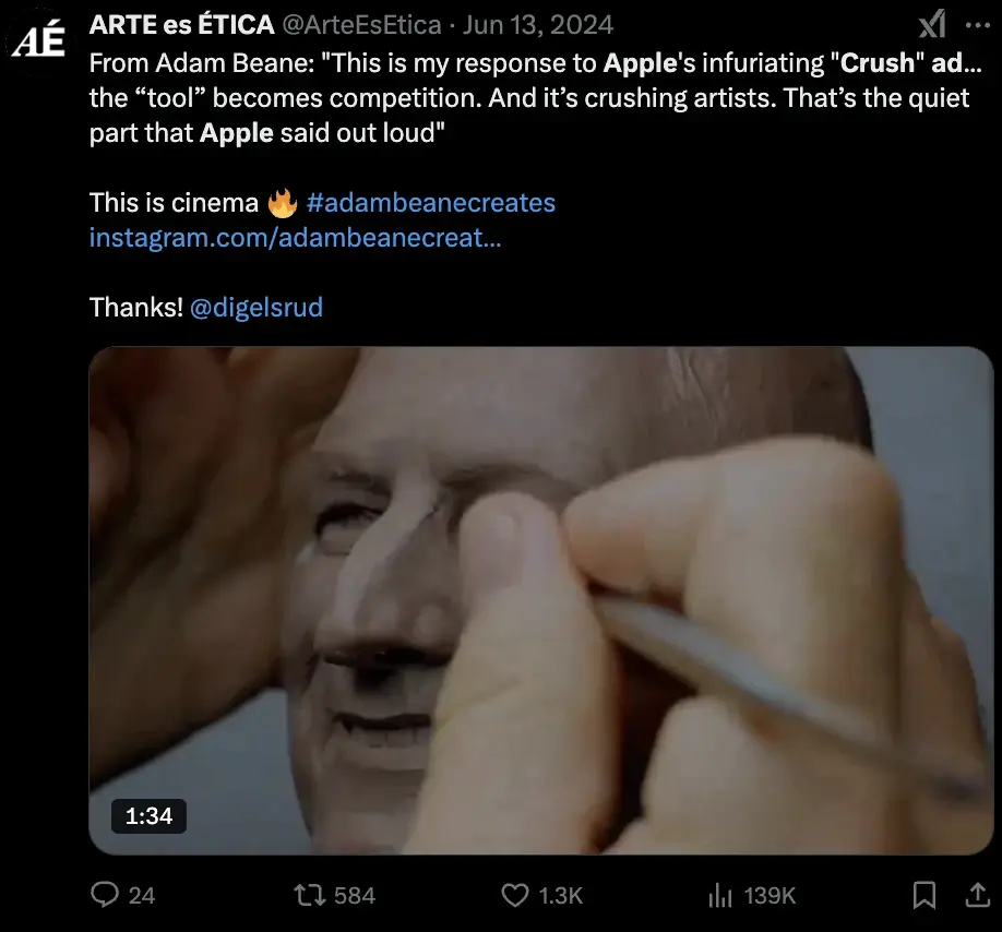 In 2024, Apple released a controversial ad called "Crush" to promote their new iPad Pro.