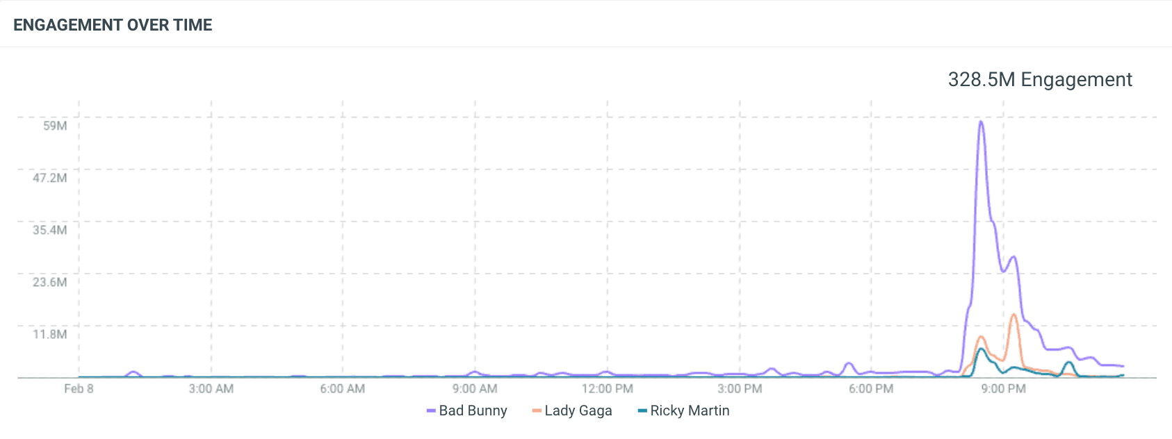 Online engagement with topics related to Halftime Show performers on February 8, 2026; Source: Talkwalker