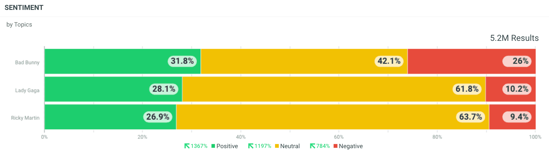 Sentiment breakdown for Super Bowl LX Halftime Show performers; Source: Talkwalker