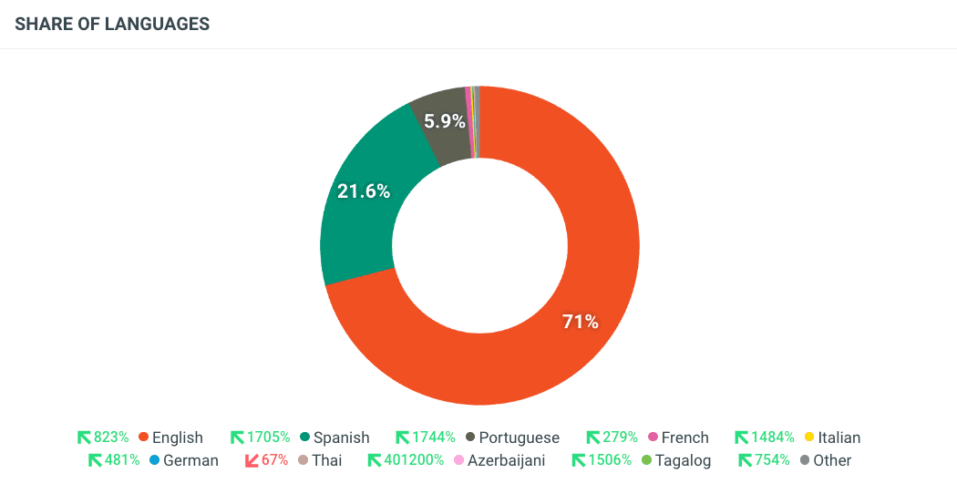 Share of languages in the Halftime Show conversation; Source: Talkwalker