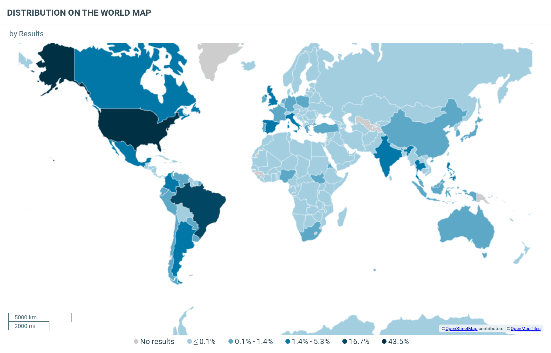 World map showing the global distribution of The Life of a Showgirl results. Darker blue areas like the U.S., India, and Brazil indicate higher activity, while lighter blue regions show lower engagement.